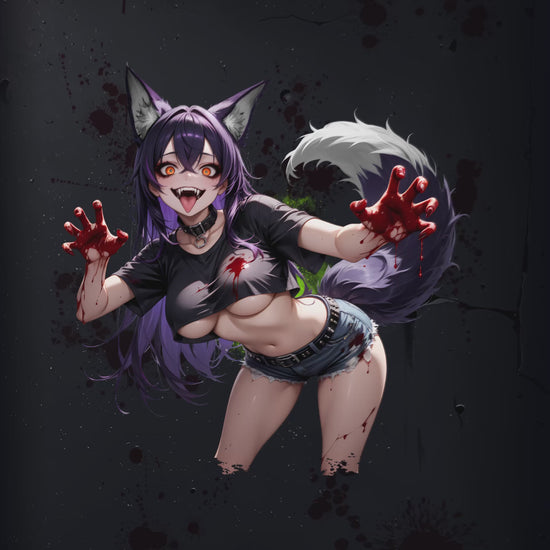 Auf der Vorderseite prangt das detailverliebte Artwork einer durchgeknallten Yandere-Waifu – sexy, süß und absolut gefährlich. Ihr Blick? Verführerisch. Ihr Grinsen? Unheilvoll.