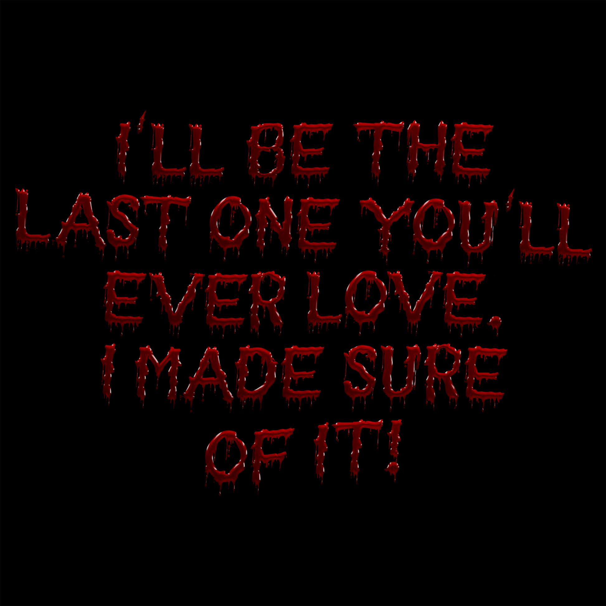 Auf der Rückseite erwartet dich ein blutroter Schriftzug, wie mit zitternder Hand an die Wand geschrieben – eine creepy Liebesbotschaft, die dich verfolgt.